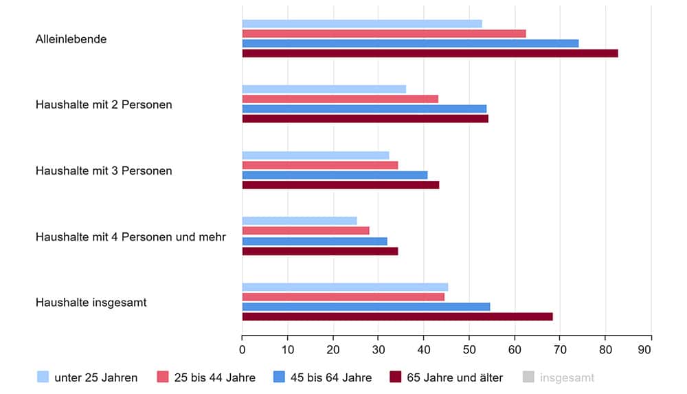Ende 2023 hatte die iba27 Stadtregion Stuttgart zum Thema „Gemeinschaftliche Wohnprojekte – Vorbilder auf dem Weg aus der Wohnungskrise?“ [1] eine Podiumsdiskussion veranstaltet. Eingeladen war auch Gunnar Laufer-Stark, Gründer der nestbau AG – Bürger-Aktiengesellschaft für Wohnungsbau. 2010 hatte er die nestbau AG als Gemeinwohlorientierte Aktiengesellschaft im Immobilienbereich gegründet – n.e.s.t. steht für nachhaltig, ethisch, sicher, transparent. Die AG hat heute etwa 500 Aktionäre und 5,6 Mio. Euro Eigenkapital. Damit betreibt sie fünf Immobilien mit drei Pflege-WGs und zwei Inklusions- Wohngruppen. Insgesamt vermietet sie gut 4.400 m² Fläche. In ihrer Satzung ist Gemeinwohl- Orientierung vorgeschrieben, was u. a. heißt, dass auch der Vorstand der AG nicht mehr als das Dreifache bekommt, wie der Geringstverdienende (auf eine Vollzeitstelle gerechnet). Und Rechtsanwalt Laufer-Stark hat auch dafür gesorgt, dass das so bleibt. Eine der AG-Klauseln ist, dass niemand mehr als 5 % der Stimmrechte ausüben darf, selbst wenn er mehr Aktien hätte. „Das verhindert zuverlässig feindliche Übernahmen. Niemand kauft Anteile, mit denen er nicht abstimmen darf“, erklärt er. Im Sommer 2025 wurde das jüngste Projekt der nest AG eröffnet – das „Neschtle“, welches das aktuelle Problem adressiert, dass alte Menschen zu viel Wohnraum haben, den sie teilweise nicht einmal nutzen. Über 65-Jährige haben in Deutschland die meiste Wohnfläche (s. Abb. 1), gibt das Statistische Bundesamt 2025 an. 27 % der Alleinlebenden unter ihnen wohnten 2022 sogar auf je mindestens 100 m2. In Eigentümerhaushalten hat diese Altersgruppe sogar noch ca. 20 m² mehr Wohnfläche als in Miethaushalten. Und der demografische Wandel wird das noch verschlimmern. Die ARD interviewte zukünftige Bewohner des „Neschtle“ in ihrer Dokumentation: „Die Alten nehmen den Jungen den Wohnraum weg“ [2].