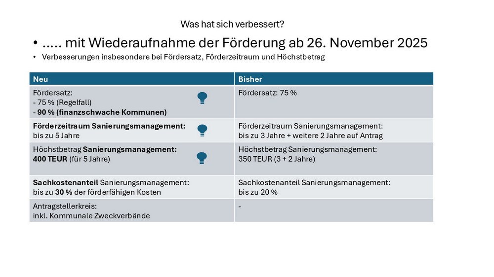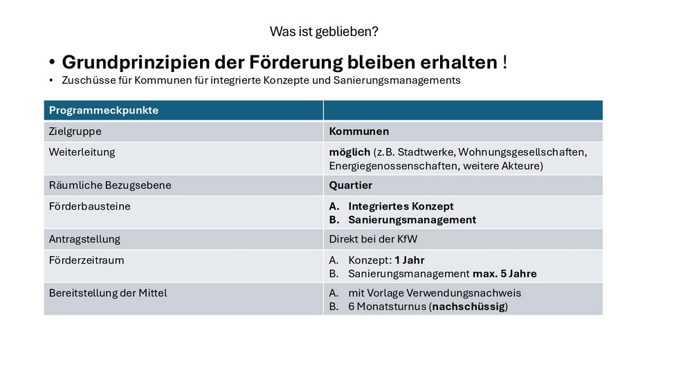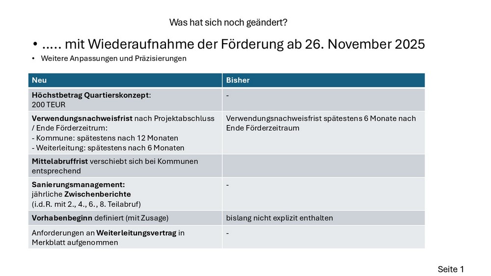 5. November 2025: Der Zuschuss „Energetische Stadtsanierung “mit erweiterten Fördermöglichkeiten wird wieder aktiviert.