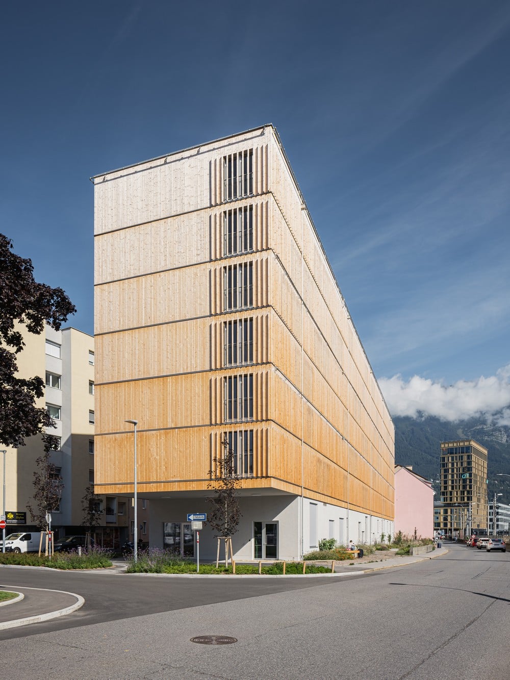 Ein leistbarer Lebensraum für Studierende und Lehrende – in zentraler Lage und ökologischer Qualität. Das war der Anspruch für das neue Gästehaus „GreenInn“ in der Karmelitergasse in Innsbruck. Und genau das wurde mit dem sechsgeschossigen Neubau umgesetzt.