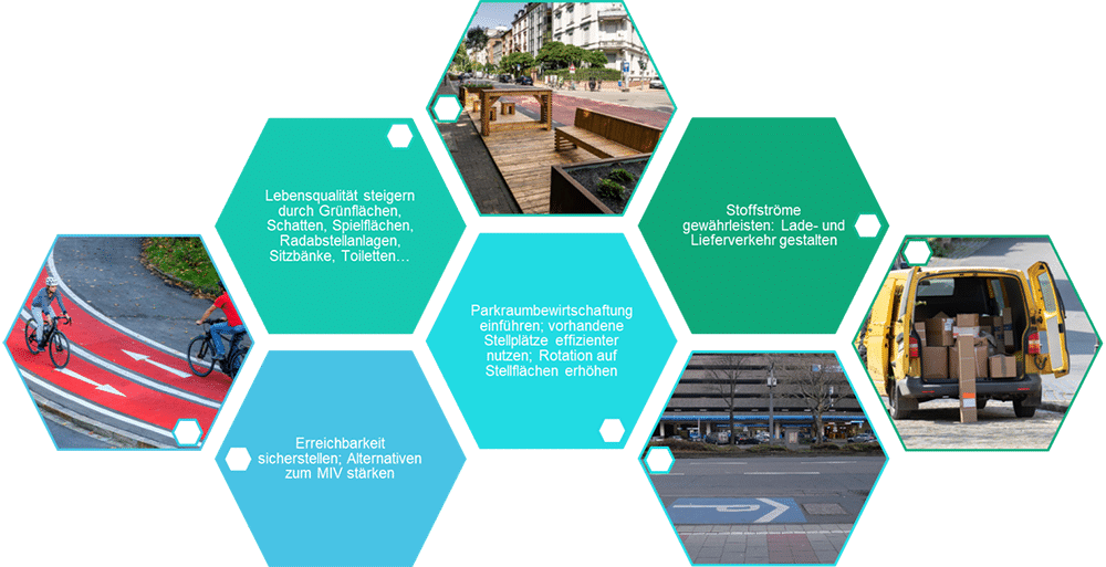 Erreichbarkeit ist und bleibt ein weiteres zentrales Kriterium. Dies können Kommunen auf vielfältige Weise sicherstellen. Eine Lösung bietet die in vielen Städten bereits erfolgte Einführung der Parkraumbewirtschaftung, die das Dauerparken verhindert und die Verfügbarkeit von Parkplätzen erhöht. Eine durchdachte Preisgestaltung der Stellplätze, die das Parken on-street teurer macht als off-street, lenkt den ruhenden Verkehr in die vielfach unterausgelasteten Parkhäuser oder Sammelgaragen.