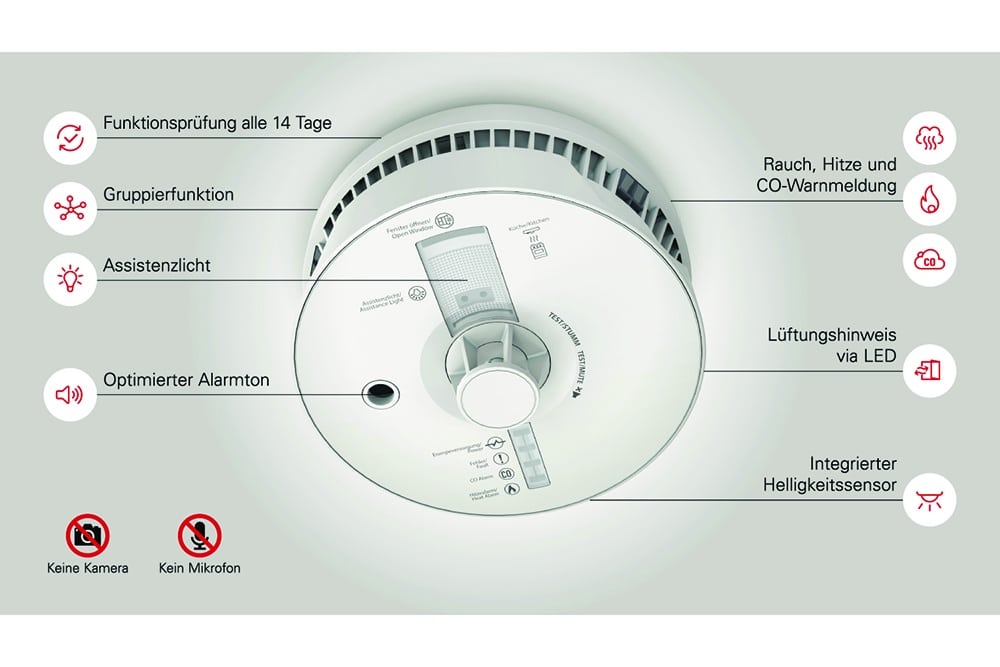 Die Auswahl, Planung, Installation und der Betrieb von Rauchwarnmeldern unterliegen aufgrund von Richtlinienänderungen oder neuen technologische Entwicklungen einem kontinuierlichen Wandel. Deshalb sollten sowohl bei einer Neuinstallation als auch beim Austausch von Rauchwarnmeldern alle aktuellen Möglichkeiten berücksichtigt werden, um eine optimale Lösung zu finden. Ebenso sollten alle Anforderungen von Bauherren, Betreibern und Bewohnern oder Nutzern berücksichtigt werden. Von grundlegender Bedeutung für die Auswahl und Planung von Rauchwarnmeldern in Wohngebäuden sind die unterschiedlichen gesetzlichen Anforderungen der jeweils geltenden Landesbauordnung (LBO). Diese sehen als Mindestausstattung nach der Produktnorm DIN EN 14604 [1] zugelassene Rauchwarnmelder in allen Schlafräumen, Fluren und teilweise in Aufenthaltsräumen vor. Gemäß diesen Mindestanforderungen werden Rauchwarnmelder meist als Stand-alone-Geräte mit einer Tauschbatterie oder einer fest verbauten Zehn-Jahres-Lithiumbatterie installiert. Eine Funk- oder Kabelvernetzung ist nicht verpflichtend, aber wegen der oben genannten Vorteile sinnvoll. Vernetzbare Rauchwarnmelder lassen sich über Schnittstellen mit externen Systemen der Sicherheits- und Gebäudeautomationstechnik oder Smart Home-Systemen verbinden. Smarte Rauchwarnmelder alarmieren bei Rauchentwicklung nicht nur vor Ort lautstark per Sirene, sondern auch mobil per App. Außerdem sind sie Teil des Smart Home-Netzes und können damit auch andere Haustechnik- Komponenten aktivieren, etwa die Beleuchtung oder Schließsysteme. Neben Bränden können auch andere Ereignisse weitergeleitet werden. So ertönt etwa die Sirene des smarten Rauchwarnmelders auch dann, wenn ein Einbruch erkannt wurde. Ebenso lassen sich Gas- oder Kohlenmonoxid-Warnmelder einbinden. Neben den Mindestanforderungen müssen auch besondere Umstände berücksichtigt werden. Werden Wohnräume beispielsweise von Menschen mit körperlichen Einschränkungen oder besonderen Bedürfnissen bewohnt, müssen barrierefreie vernetzte Rauchwarnmelder installiert werden, die mindestens zwei Sinne wie Hören und Sehen ansprechen (Zwei-Sinne-Prinzip), respektive eine Signalweiterleitung an überwachende Stellen ermöglichen.