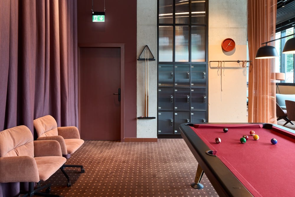 Türen und Zargen sind dabei harmonisch auf das Interieur abgestimmt: meist in mattem Schwarz, teils in dunklem Rotbraun. In Fluren und Fluchtwegen erfüllen sie alle Anforderungen an Brandschutz, Panikfunktion und sichere Schließtechnik. Für ruhige Nächte im Hotel sorgen Varianten mit geprüften Schallschutzwerten, die je nach Einsatzbereich individuell kombiniert werden können.